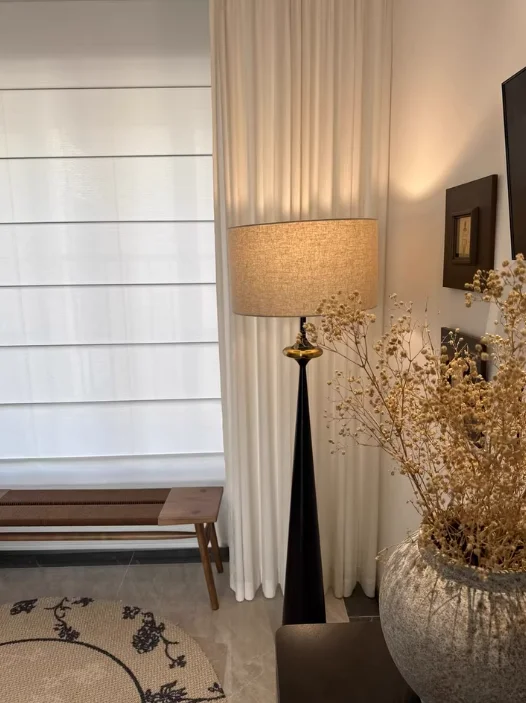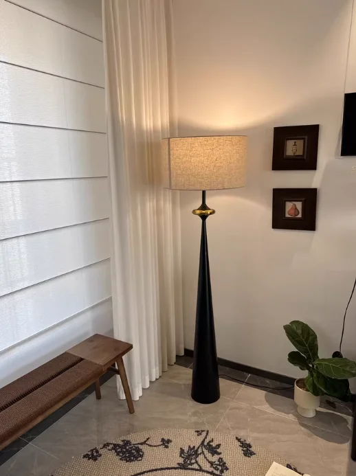 This modern floor lamp blends a walnut wood body with a classic fabric shade, inspired by elegant French medieval design. Ideal for foyers, bedrooms, or living rooms, it provides soft downward LED lighting for areas of 5–10m². The lamp includes an LED bulb, features a convenient button switch, and operates on AC 90–260V power. Crafted for both style and reliability.