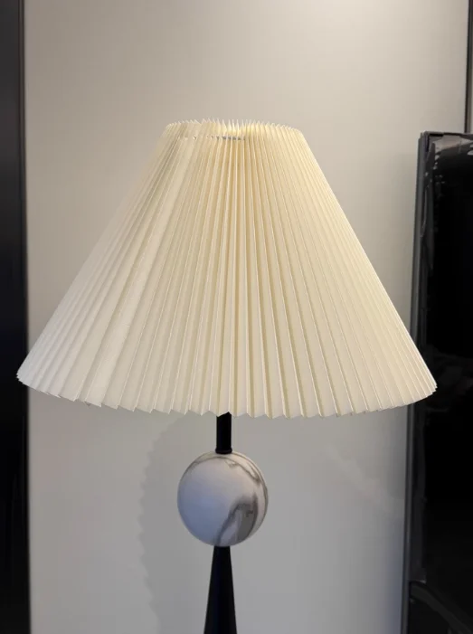 Soft ambient lighting: Downward-facing fabric shade delivers warm, comfortable illumination for living spaces.