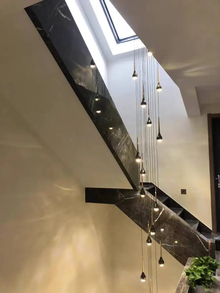 Cascading Water Drop Design – Creates a dramatic vertical lighting effect and architectural focal point