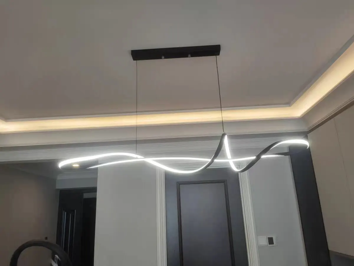This contemporary sculptural pendant light features a flowing, wave-like form that creates a striking focal point above dining tables, kitchen islands, or modern living spaces. Crafted from durable alloy with a sleek, minimalist finish, it delivers elegant ambient illumination across medium-sized areas. Designed for cord pendant installation, it blends artistic design with everyday functionality for modern interiors. Ideal for those seeking a statement ceiling light that feels both refined and architectural.