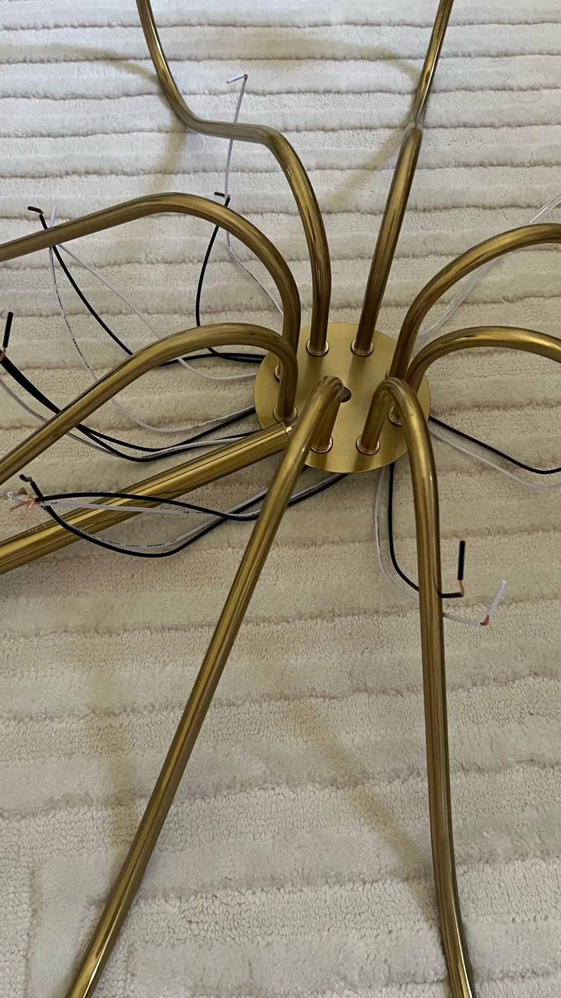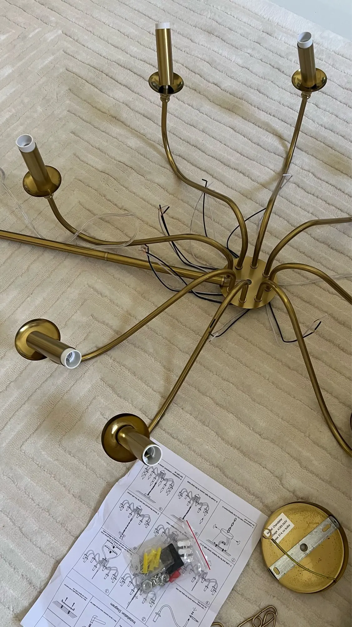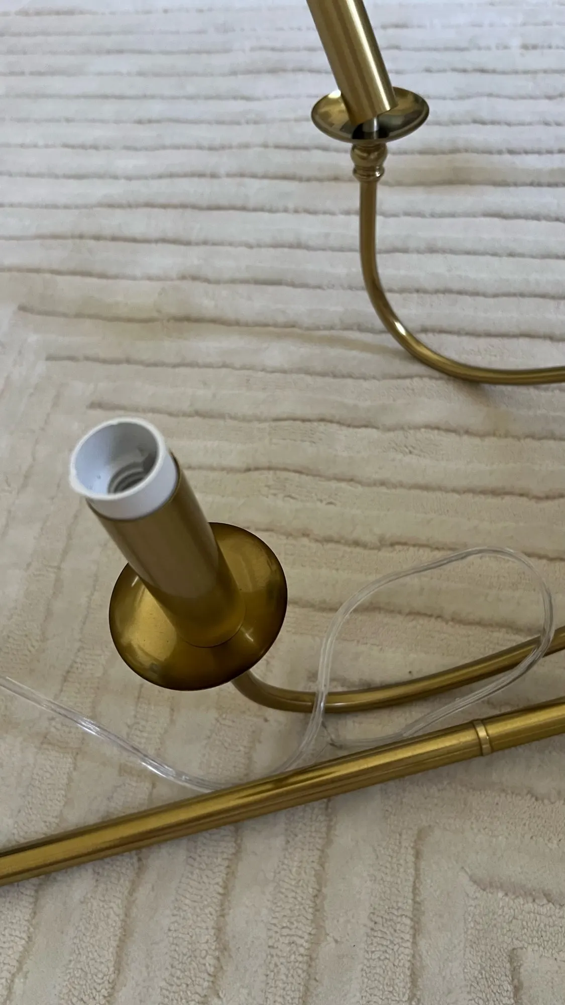 Latrisha Erdman Fast delivery. But the length of the connection cord is 90 cm, which is too short. There are no nuts included to secure the 4 beams with bulbs. I had to buy nuts separately. BUT THAT'S NOT ALL. The threads on the four beams (in my case for 4 bulbs) are covered in paint, and tightening the nut was very difficult. So-so...